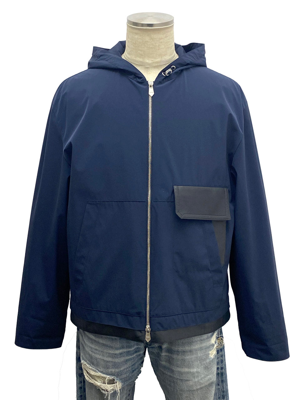 エルメス/メンズ レザーポケット フード付きナイロンジャケット