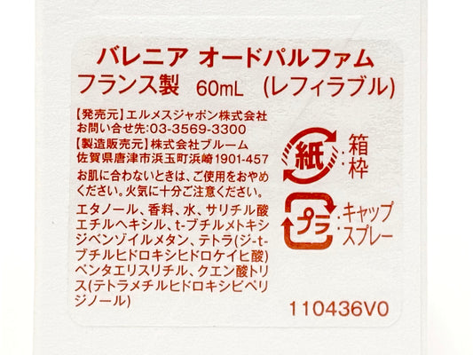 エルメス/オー ド パルファム 《バレニア》 60ml
