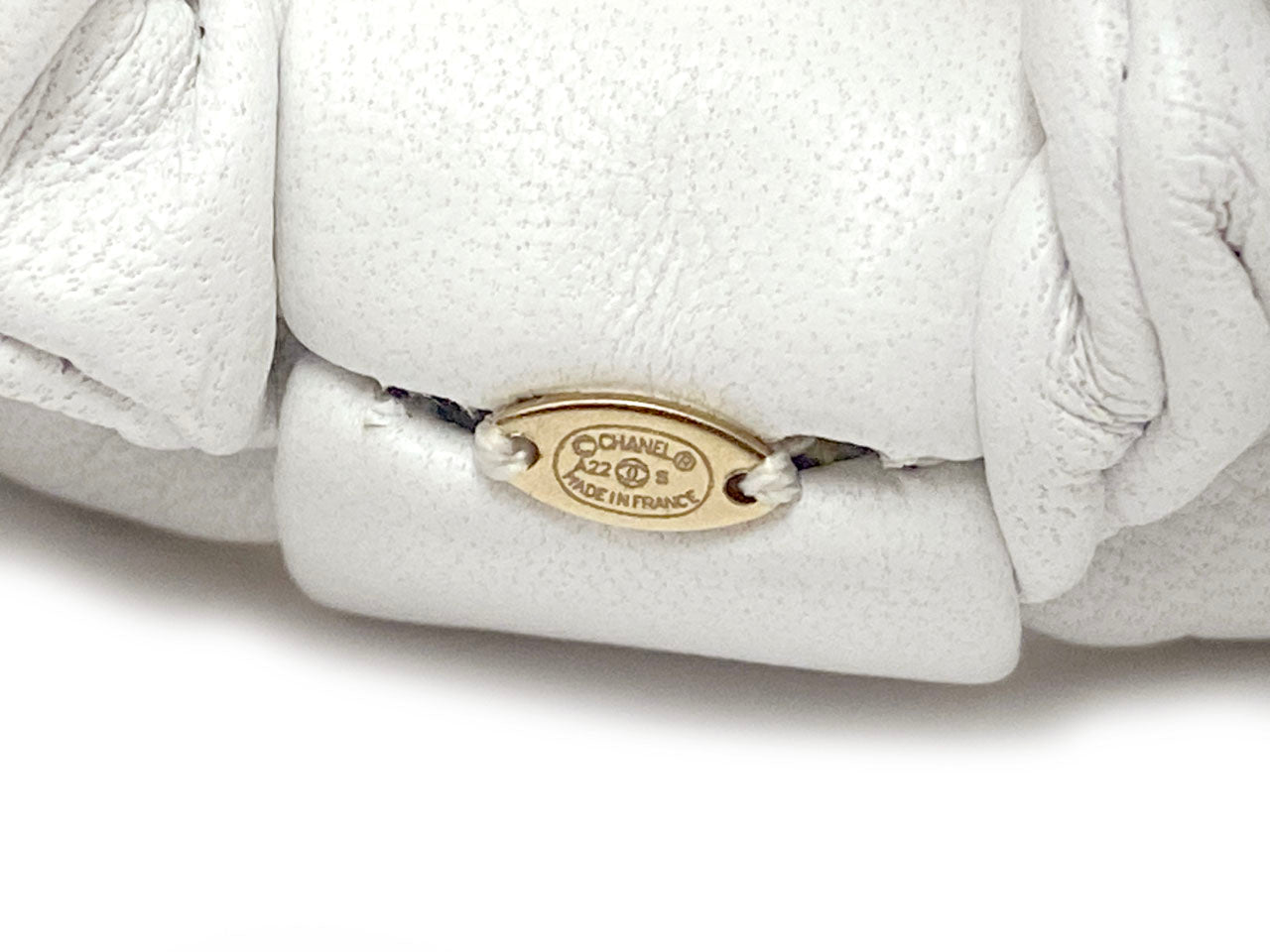 一目でシャネルと分かるココマークと縁周りにチェーンがあしらわれたリボンデザインが存在感抜群♪