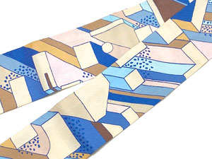 今回入荷したお品は、「オン・ア・サマーデイ」と題される、建築を学びデザイナーとなったナイジェル・ピークによってデザインされた、想像のメガロポリスを幾何学的に描いた絵柄のツイリーです。