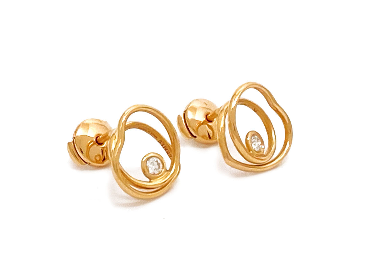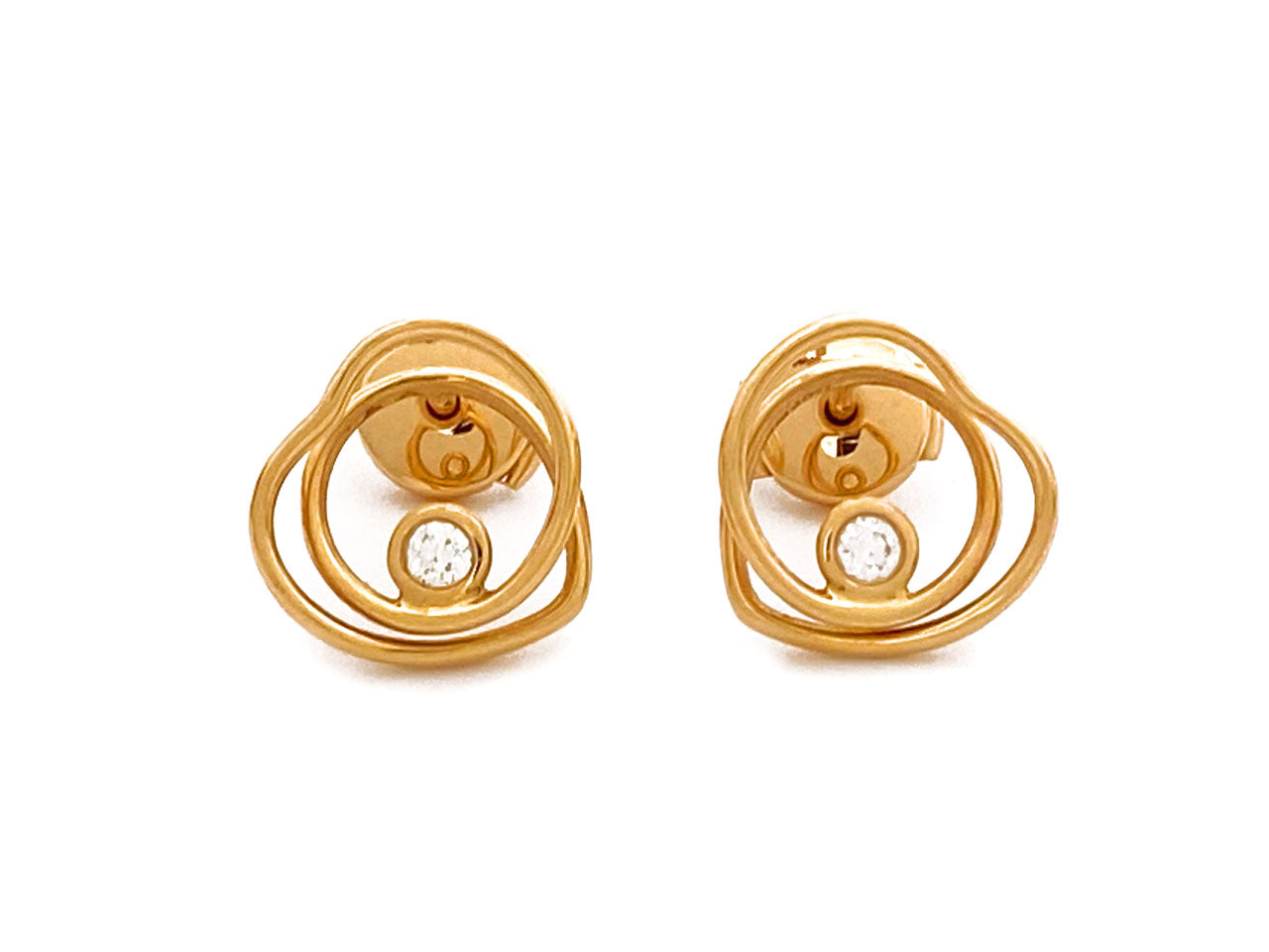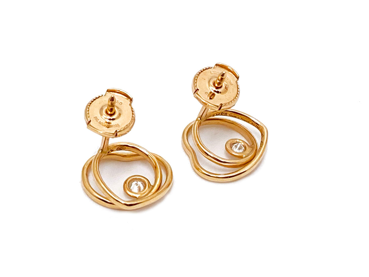今回入荷したお品は、二重の環の中に見え隠れするハートと煌びやかなダイヤモンドが可愛らしいデザインのピアスです。
