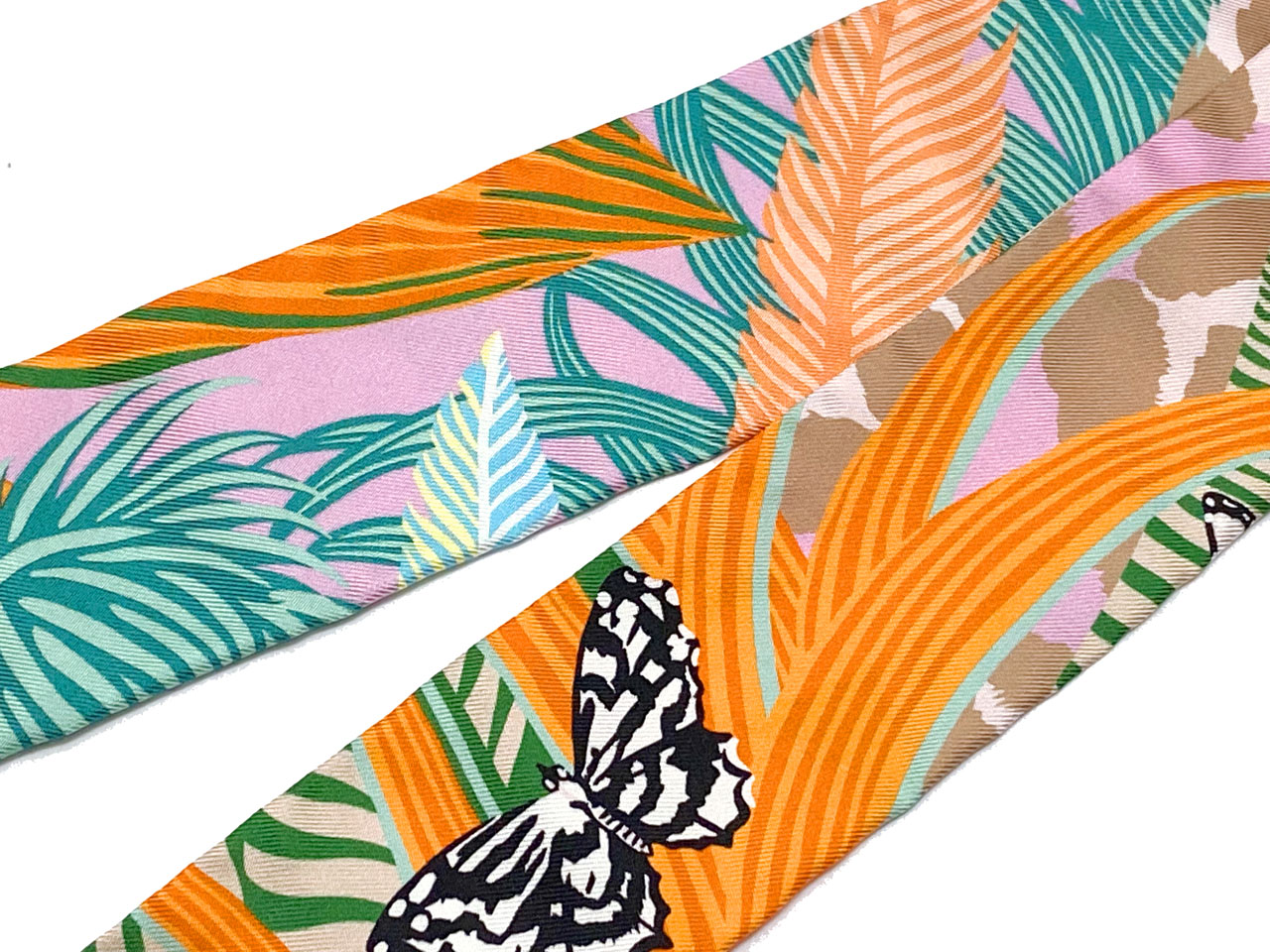 素敵なカラーリングとエルメスらしさ満点の素敵な絵柄、コーディネートのしやすさも文句なしのツイリーです。
