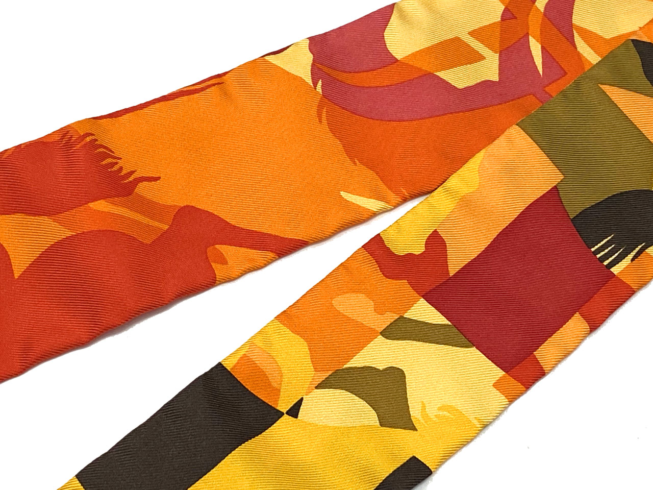 素敵なカラーリングとエルメスらしさ満点の素敵な絵柄、コーディネートのしやすさも文句なしのツイリーです。