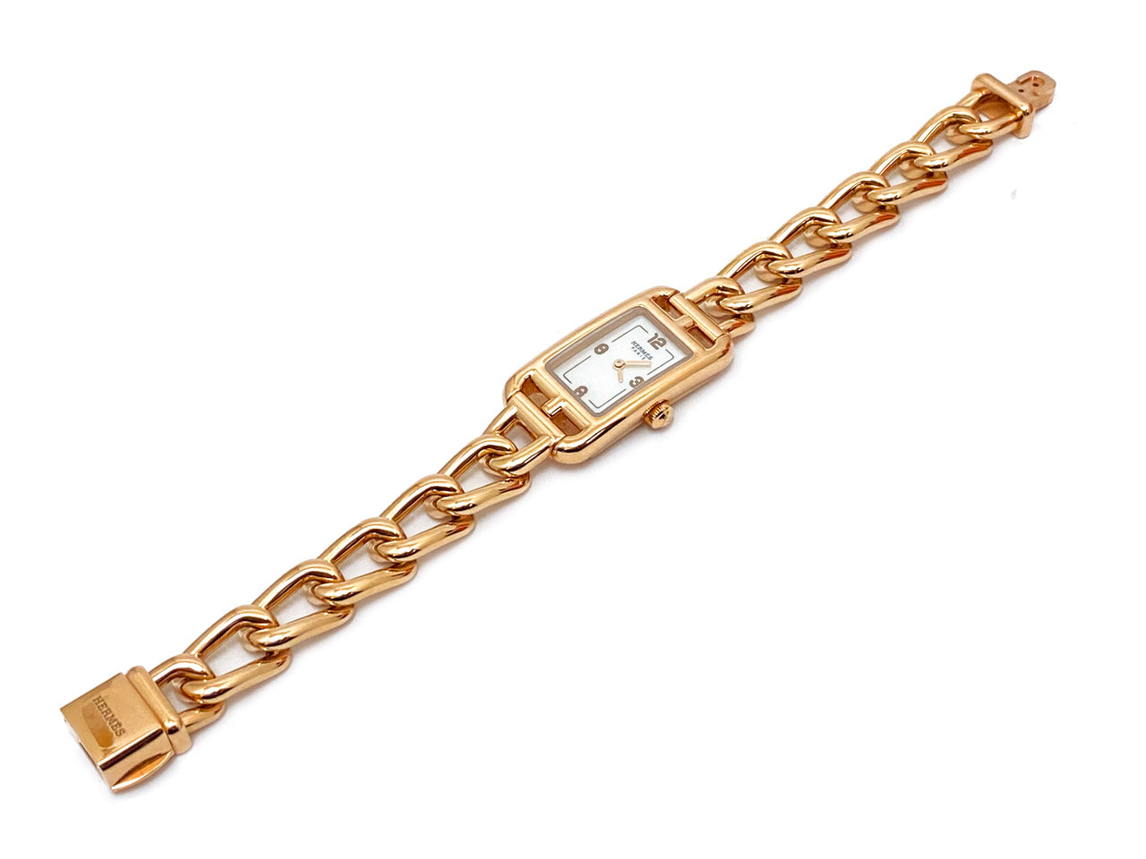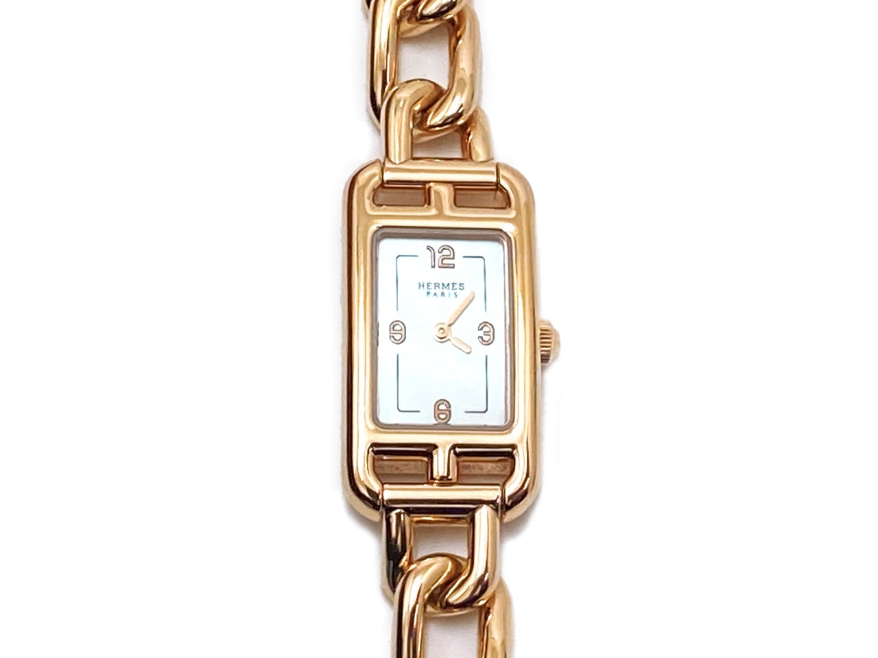 船を岸につなぎとめる錨の鎖にインスピレーションを得たエルメスを代表する《シェーヌ・ダンクル》をモチーフにした、高いデザイン性と機能性を併せ持つアイコニックな腕時計が入荷です。