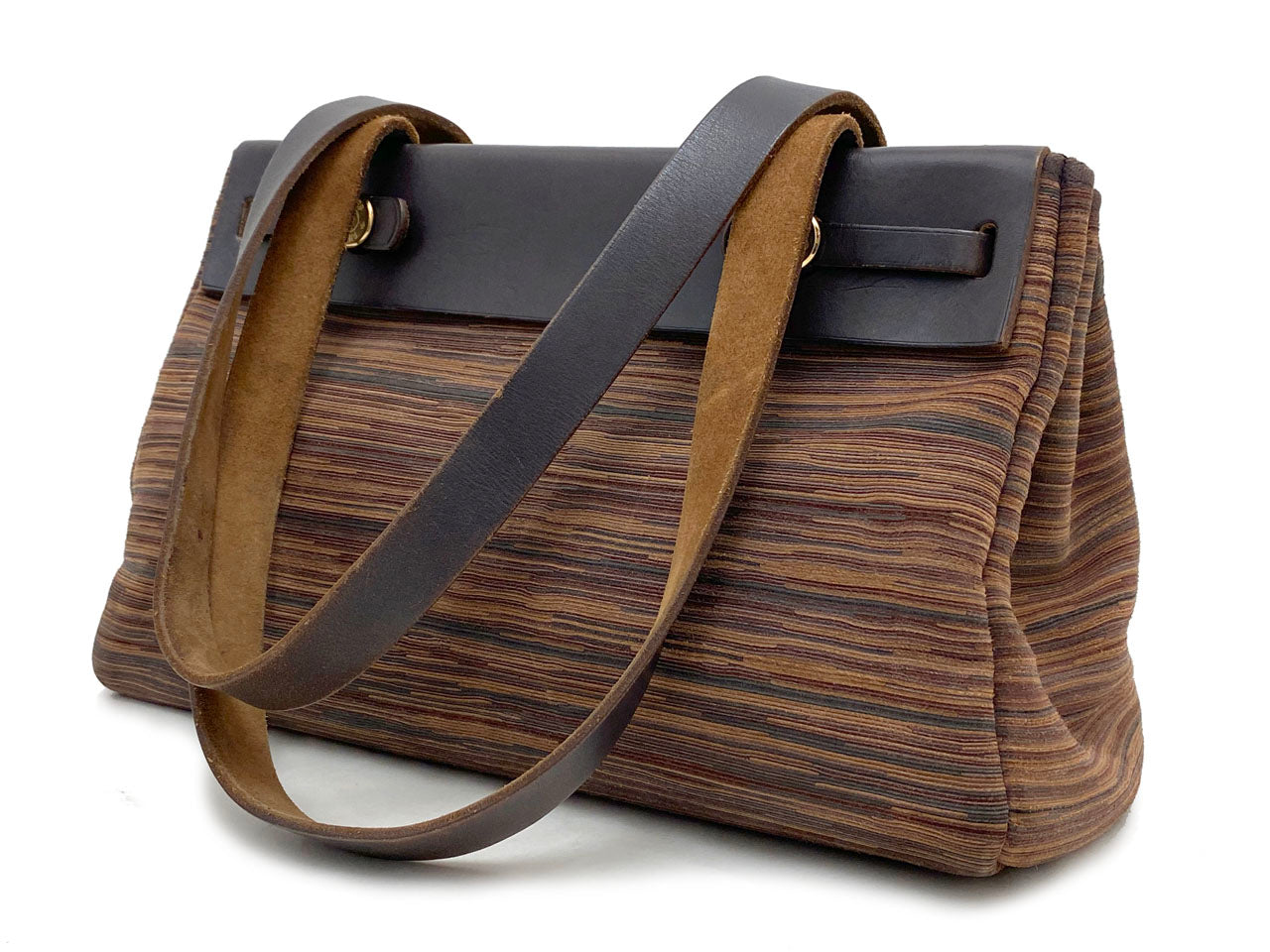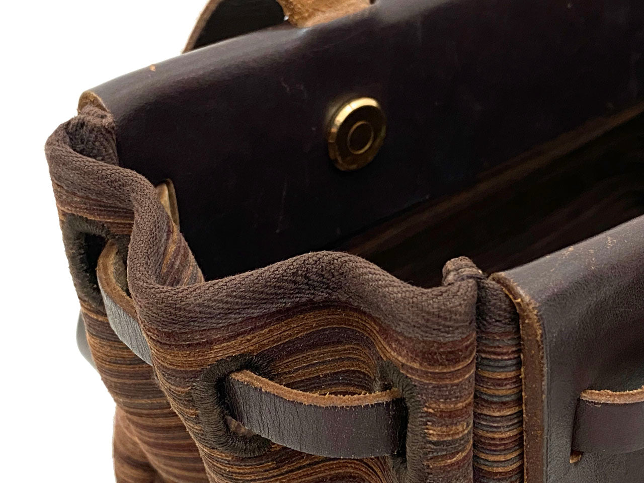 しかも今回入荷したお品は、カラフルな山羊革を幾層にも重ねて貼り合わせた後に裁断して作られたヴィブラート素材のエールバッグ。