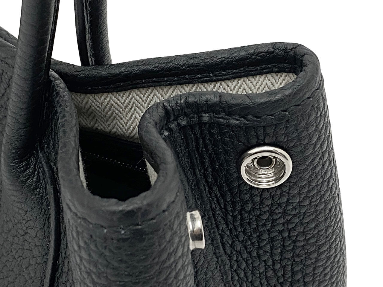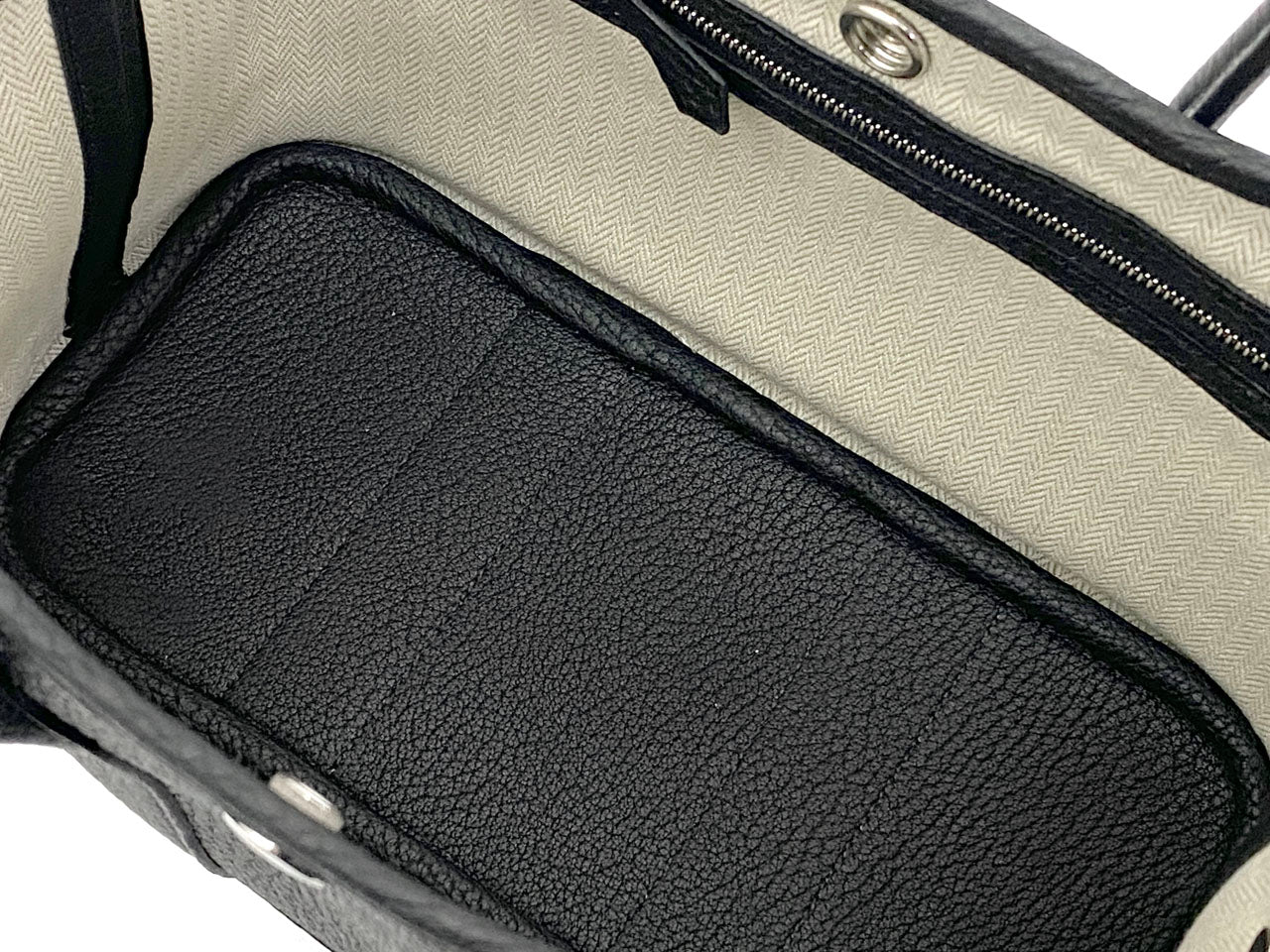 また、このオールレザーの「ガーデン」シリーズのバッグには内側にファスナー付きのポケットが1箇所あり、両サイドのスナップボタンにより開口部を大きく開けることが出来るのも嬉しい仕様です。