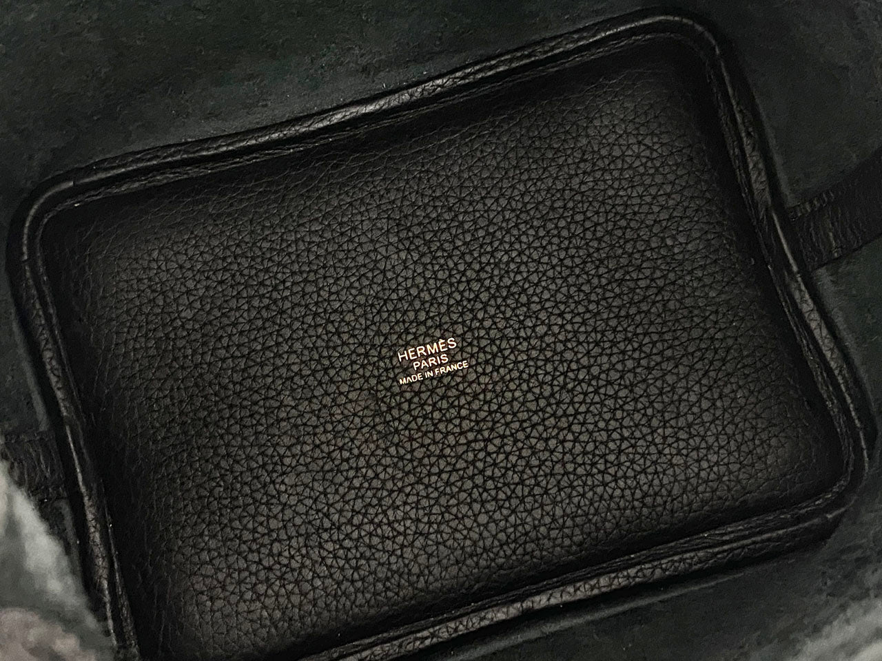 カラーリングは定番で合わせやすいブラックカラーにゴールド金具の組み合わせで、使用される素材は柔軟性のある型押し素材「トリヨンクレマンス」。傷も目立ちにくい使い勝手のよい素材でコンディションの変化も現れにくく、いつもでも新品に近い状態でお使い頂けます。