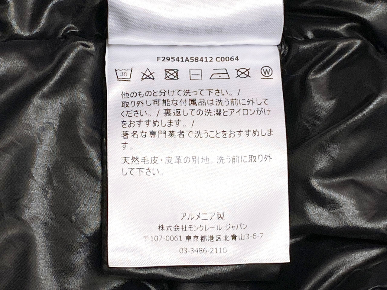 | 素材 | ナイロン100% 裏地:ナイロン100% 中綿:ダウン90%、フェザー10% 毛皮:フォックス |