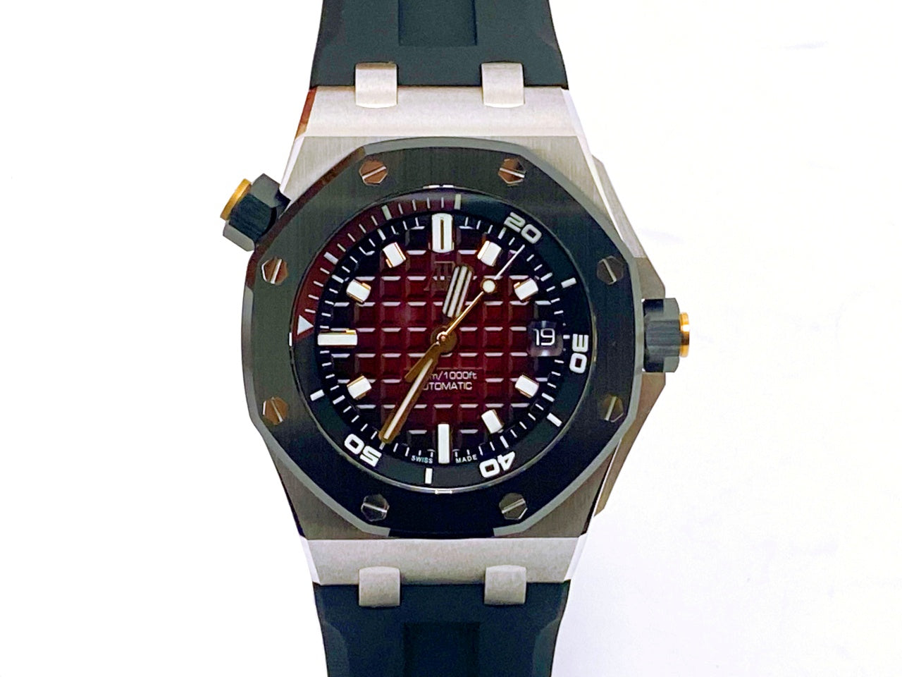 今回入荷したお品は、八角形ベゼルとタペストリーダイヤルが特徴の、ステンレススティール製高級スポーツウォッチとして革新をもたらした「ロイヤルオーク」コレクションで、その中でも軽量なフォージドカーボンを使った「ロイヤルオーク オフショア ダイバー」です。