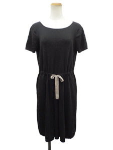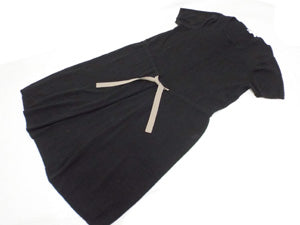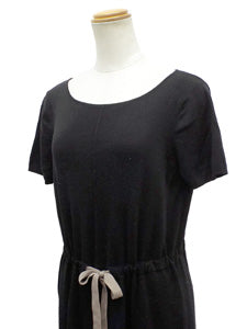 ラウンドネック「のシンプルなフォルムに、ウエストのリボンベルトうぃキュッと締めるラフ感のあるスタイル。豊かな伸縮性と柔らかい素材感が着心地のよいワンピースです。