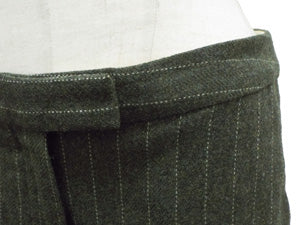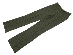 上品で深みのあるグリーンカラーにピンストライプのデザイン。ノータックのストレートスタイルが着回しのきくパンツです。