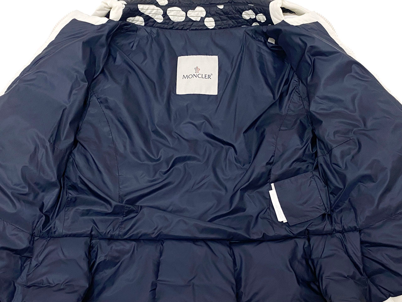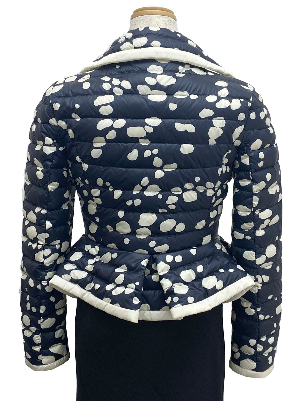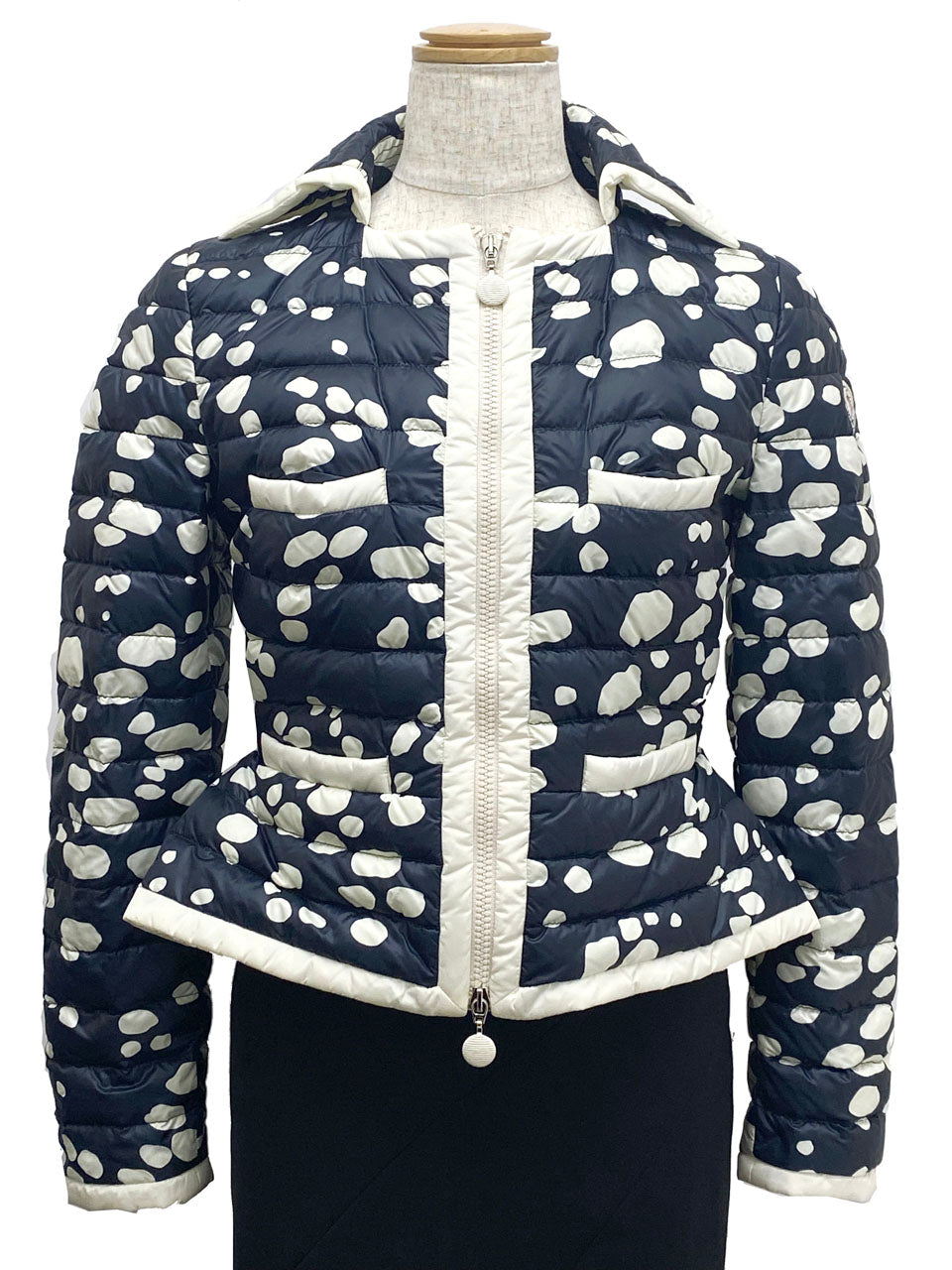 ウエスト付近からやや広がるペプラムデザインに可愛らしい水玉模様が大人フェミンなダウンジャケットです。