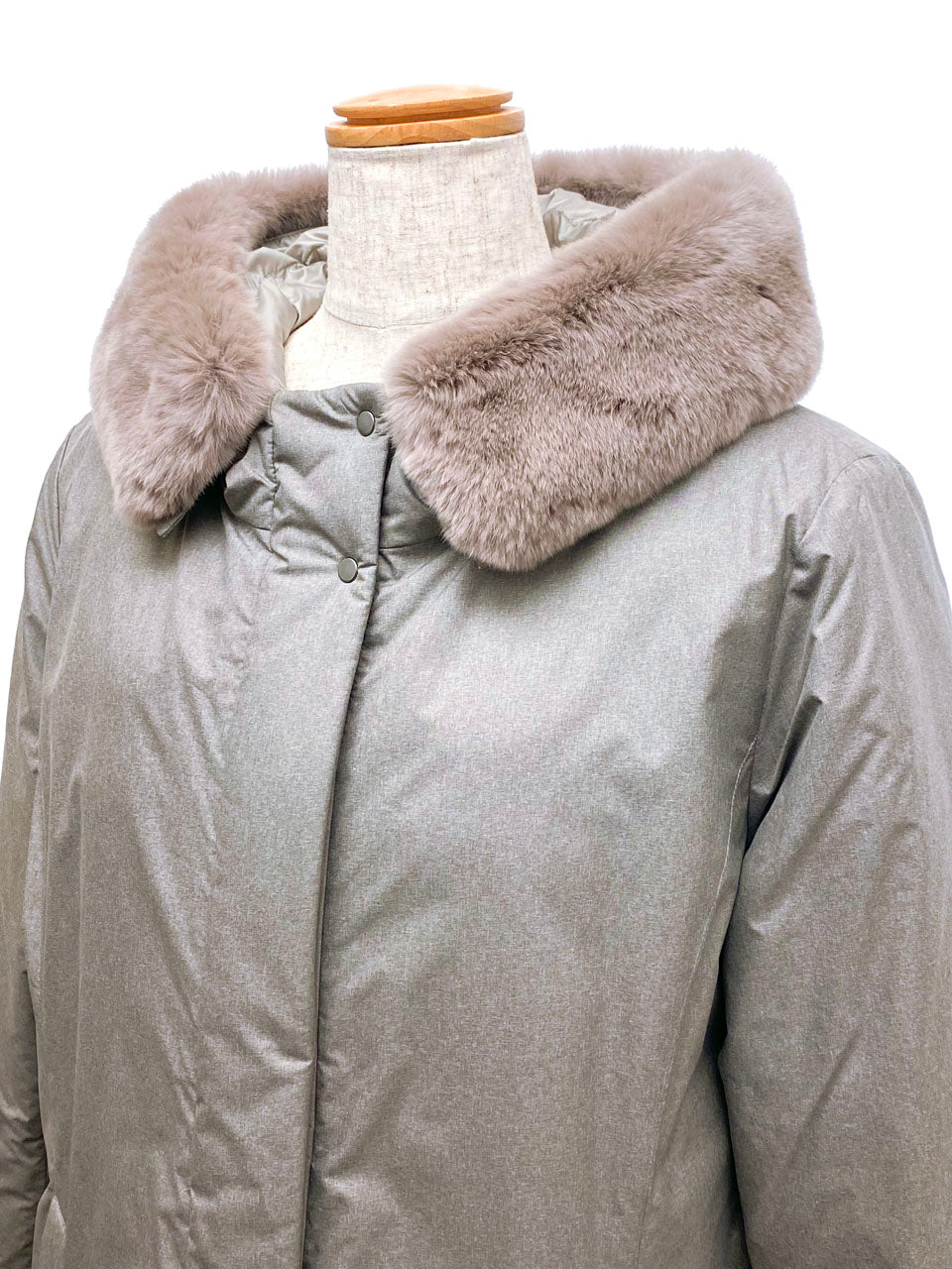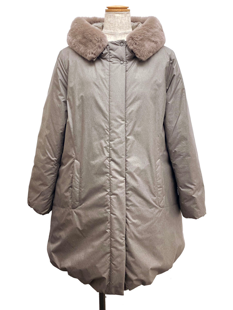 今回入荷したお品は、マット感のあるコットン素材を使用したラビットファーフード付きのダウンコートです。