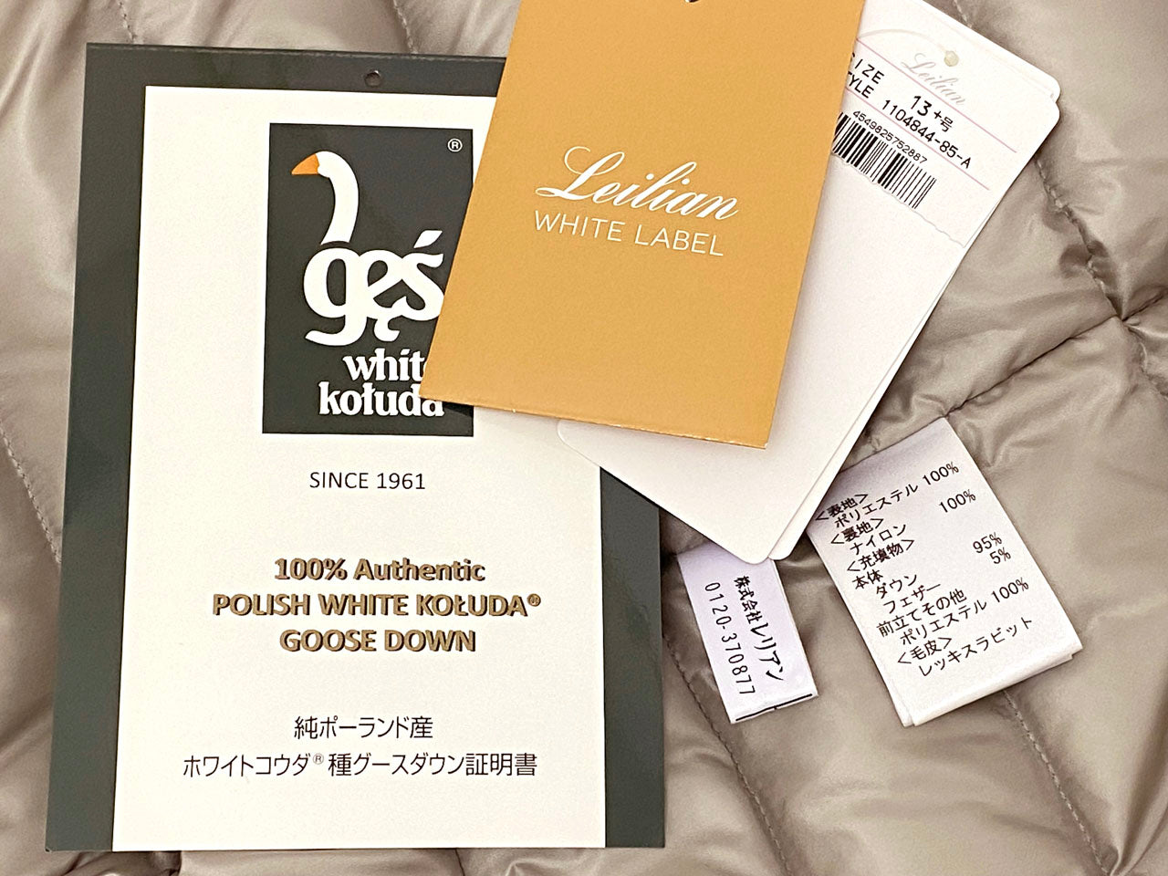 | 素材 | ポリエステル100% 裏地:ナイロン100% 中綿:ダウン95%、フェザー5% |