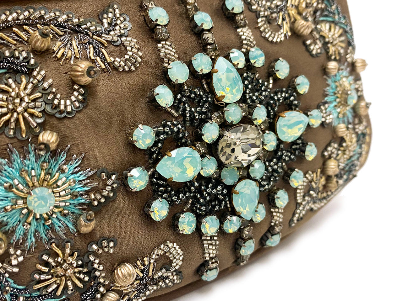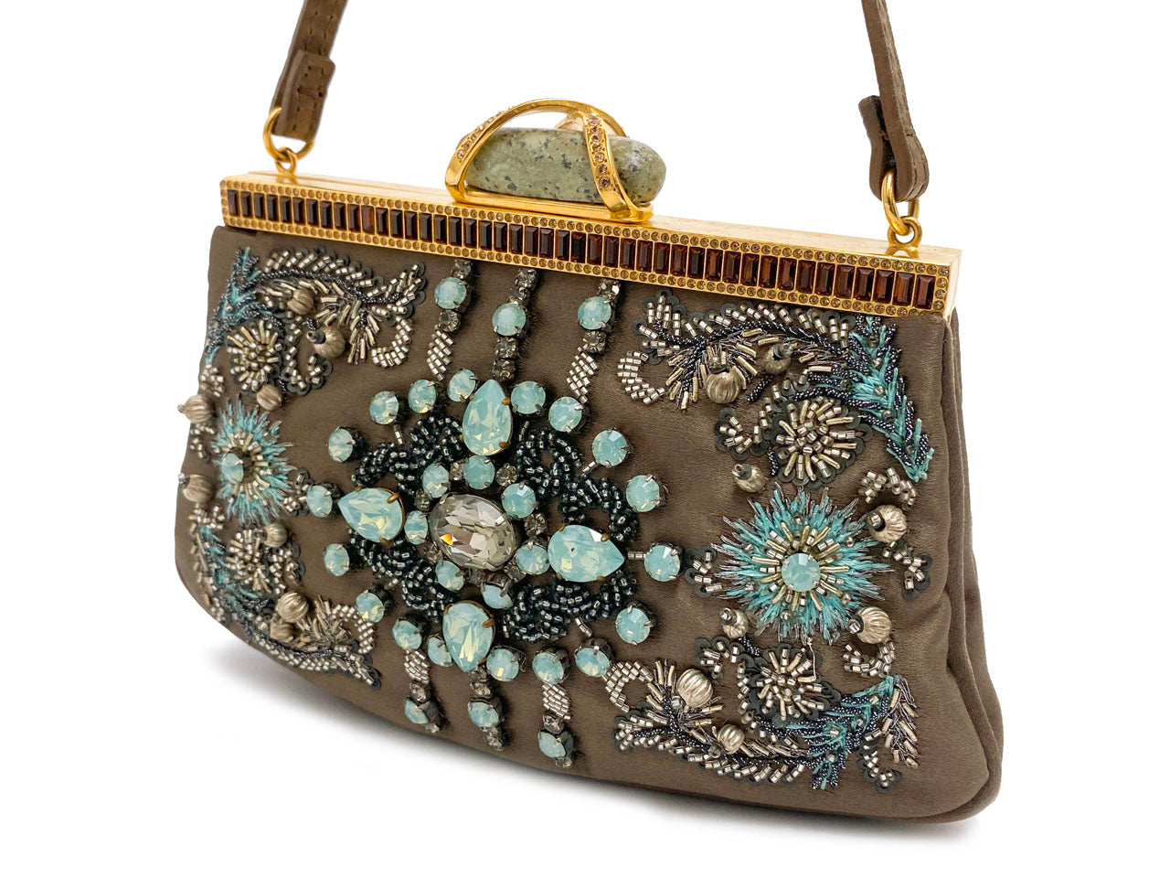 今回入荷したお品は、ビジューとビーズを使用したゴージャスながま口バッグです。